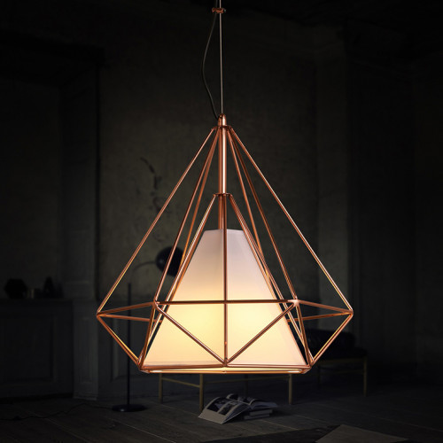 Один из самых популярных светильников в геометрическом стиле с каркасом в виде кристалла из металлических прутьев и текстильным внутренним абажуром — </br> ТЕПЕРЬ В МОДНОМ МЕДНОМ ЦВЕТЕ!!! Подвесной светильник The Diamond Chandelier Kevin Reilly M - это изысканное и элегантное дополнение к любому интерьеру. Сочетание простых линий и изысканного дизайна делает этот светильник идеальным выбором для современных пространств. Его уникальная форма и мягкое освещение создают уютную и романтическую атмосферу, привнося нотку роскоши в любое помещение. Выполненный из высококачественных материалов, этот подвесной светильник обещает долговечность и непревзойденное качество. Придайте своему дому изысканный шарм с помощью The Diamond Chandelier Kevin Reilly M.