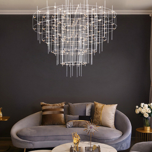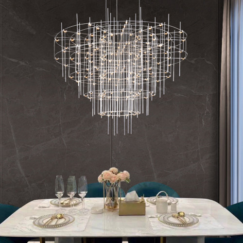 Люстра с точечными светодиодными источниками на серебристом каркасе с декором из стеклянных стержней CHILL A